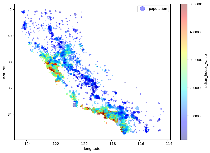 c="median_house_value", cmap=plt.get_cmap("jet"), colorbar=True,