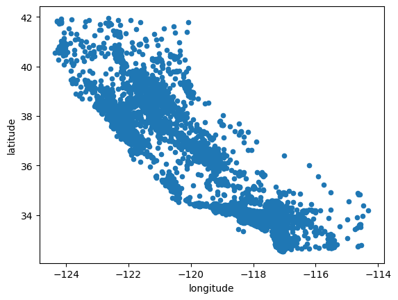 housing.plot(kind="scatter", x="longitude", y="latitude")