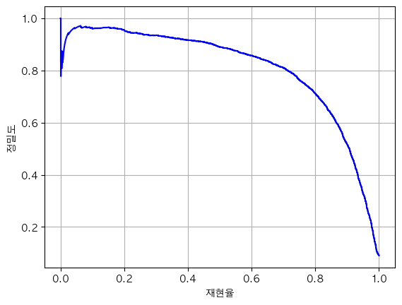 # 모든 임계값에 대해 정밀도와 재현율을 계산